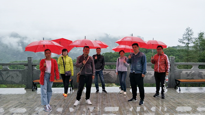 次日,一早就飘起绵绵细雨,但小伙伴们无畏风雨攀登白云山。满山苍翠中,完美体育官方网址的红雨伞显得格外亮眼,成为山谷中的一道风景线。