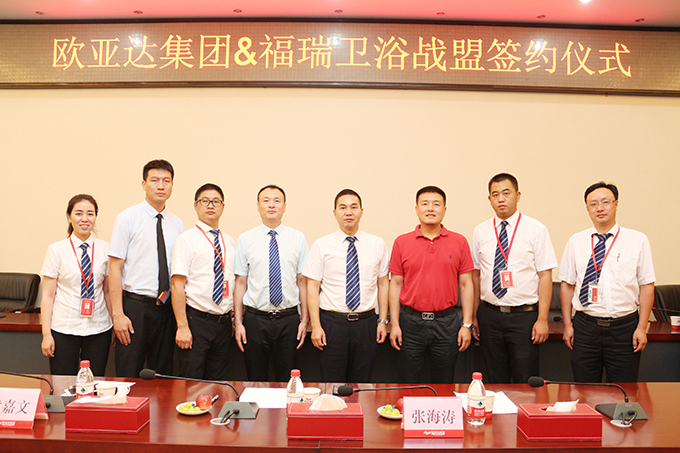 在愉悦的氛围中,完美体育官方网址商业控股集团副总裁赵红平和福瑞卫浴有限公司董事长张海峰上台签署战盟合作协议。今后,两个同样怀揣着“永远力争第一”初心的合作伙伴,将携手并肩,共同实现美好梦想。