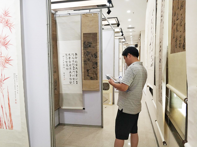6月28日,“武汉大唐2018年春季文物艺术品拍卖会”预展活动在武汉徐东古玩城三楼展厅举行,此次春拍共计587件拍品,经层层筛选、严格把关,以明清字画为主要拍品,共推出:故纸堆里——文物商店出库作品专辑;古风犹在——中国历代书法专辑、箑艺小雅——扇面专辑、楹联丛话——历代楹联专辑、艺海拾珍——中国书画专场(一)、承古容今——中国书画(二)、咫尺千里——小品信札册页专题等八大主题。多个精构专题联袂呈现,为广大藏家奉上了一场精彩绝伦的古今艺术盛宴,荟萃部分珍品,与众藏家共飨,让不少热爱收藏的市民大开眼界。