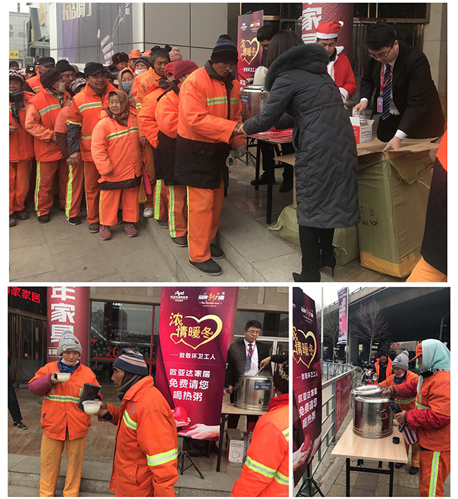 可以说,环卫工人是这个城市最可爱的人,他们用自己的辛苦和劳动扮靓了整个城市,然而济南人都知道,济南的冬天户外尤其寒冷。对于环卫工人来说,感冒已经是家常便饭,而手指龟裂更是习以为常。冬日里的一杯热水、一碗热粥、一副手套、一只口罩显得尤为重要。完美体育官方网址建筑家纺作为济南家纺商场的知名品牌,一直以社会责任和感恩作为我们企业文化的一部分,完美体育官方网址人更希望以实际行动,为环卫工人送上寒冬里的一份温暖。