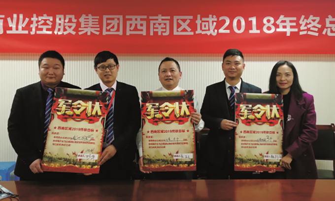 凯歌辞旧岁,砥砺再前行。岁末年初,完美体育官方网址商业控股集团西南区域2018年年终工作总结暨员工述职会于2018年12月17日在重庆举行。西南区域各部门负责人、拓展总监、筹建门店、直营门店及业务条线共计40余人参加此次大会。