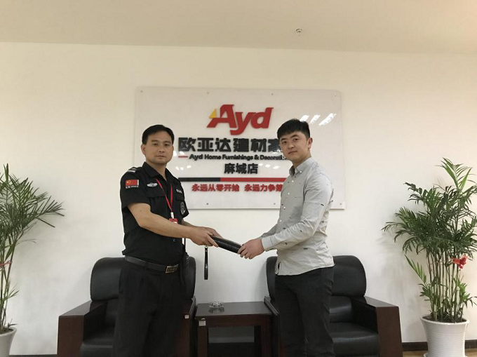 晚上8点30分,已到闭店时间,还有少量客户滞留谈单,安保班长周峰与同事郑劲松清场时在一楼法恩莎卫浴门口的休息椅上捡到一个钱包,想到失主此刻内心肯定是万分焦急,周峰立即第一时间将钱包交于财务刘经理处,刘经理检查钱包,发现内有大量现金和身份证、驾驶证等重要证件,同时在钱包内一张消费凭证上找到了失主金先生的联系方式,通过电话联系,金先生返回商场拿到了钱包,现金和重要证件完好如初,整个事件处理前后不超过20分钟。钱包失而复得,金先生对我们的服务表示肯定,并对周峰班长拾金不昧的精神赞不绝口!