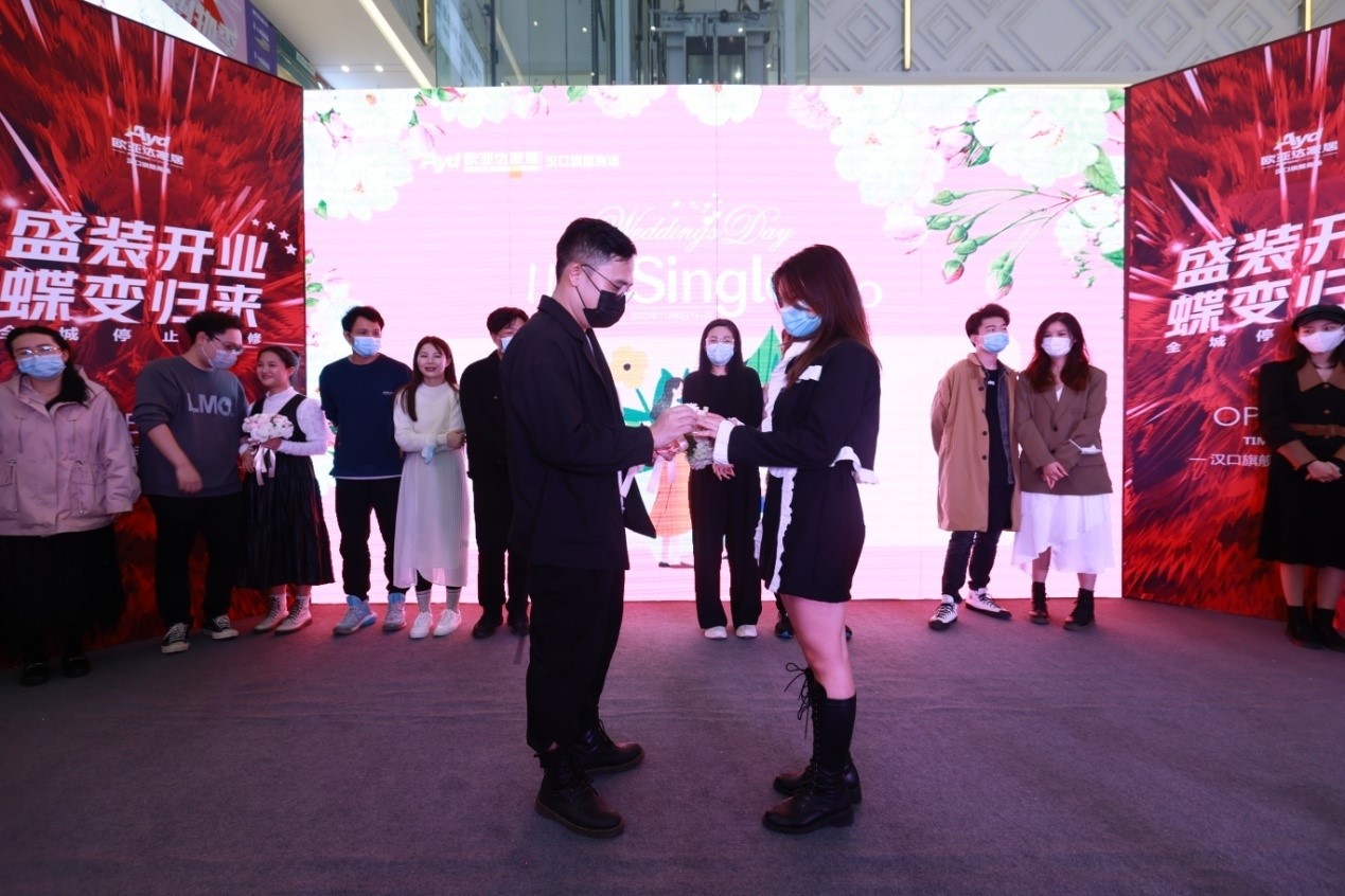 本次活动于2021年11月6日,在完美体育官方网址汉口旗舰商场盛大举行,更携手周六福珠宝、幸福纪婚纱摄影、觅千谷健康饮品、熊猫不走蛋糕联合赞助,希望可以将这份独特的浪漫凝固成每个人记忆中的美好瞬间。