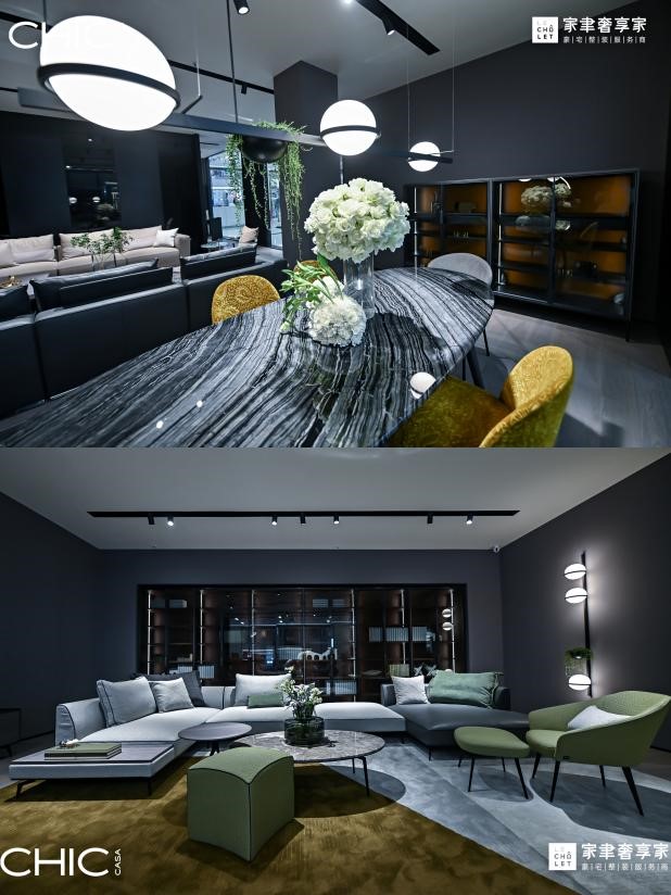 CHIC CASA品牌风格为现代简约家纺,产品线涵盖客厅、餐厅、卧室、书房、饰品(沙发、床、柜体、桌椅、茶几角几等单品),精品家具套系包含爵士、闪耀、绽放、平行线、例外、时光、纯粹、缤纷等系列,且每年都会推出与国际家纺时尚同步的经典新品。