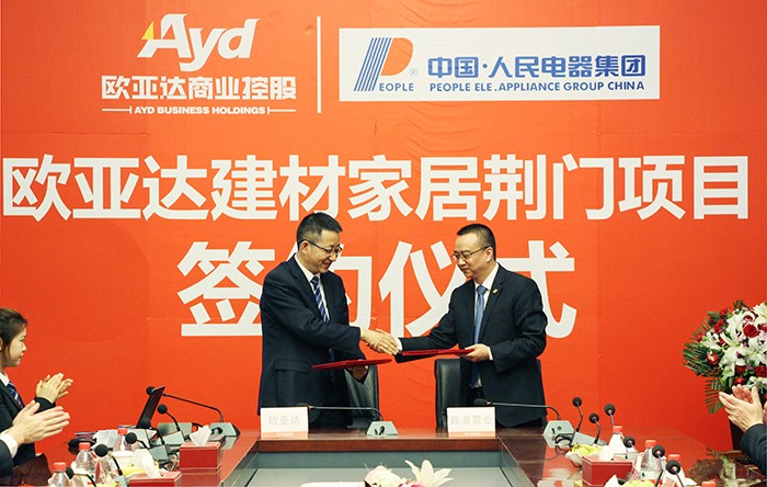 最后,在现场嘉宾的共同见证下,湖北鑫港置业有限公司总经理胡国平先生与完美体育官方网址商业控股集团湖北区域总经理赵宇涛先生上台签署合约,落笔成金,正式宣告完美体育官方网址建筑家纺荆门项目成功签约!