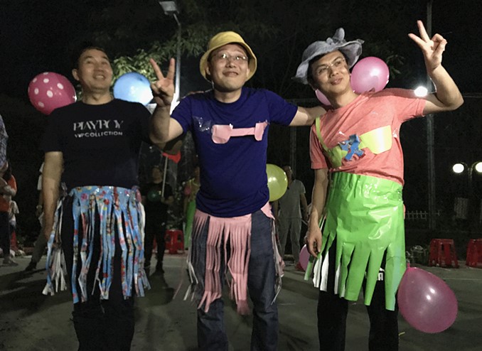 这一刻,从来没见过平日作风严谨的领导会如此放开自我。气氛一旦释放,小伙伴们彻底放飞了自己,在时装秀里,平日里MAN力爆表的纯爷们,纷纷穿上设计师妹子们巧手制作的彩色纸裙,戴上艳丽帽子,围场走秀。